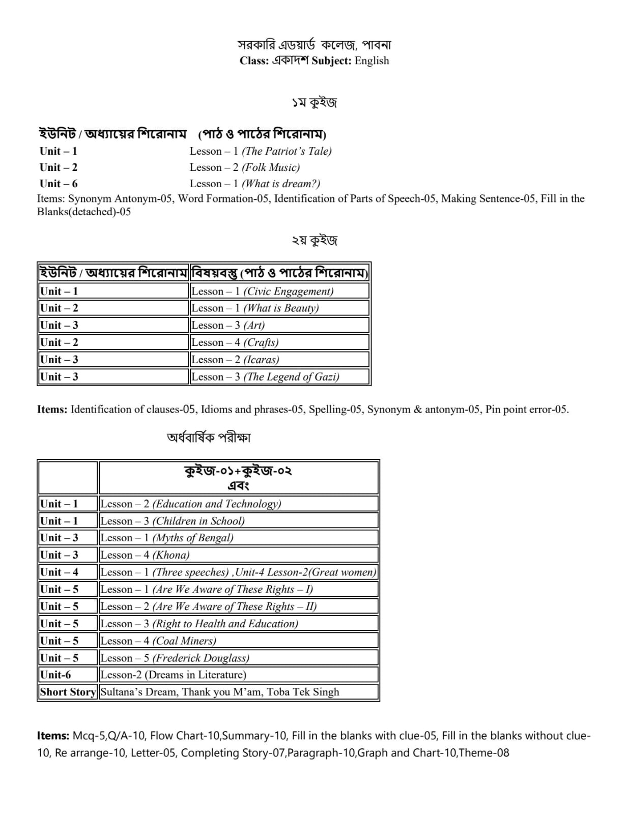 | HSC একাদশ ইংরেজি ১ম CQ পরীক্ষার সিলেবাস ও মানবন্টন |