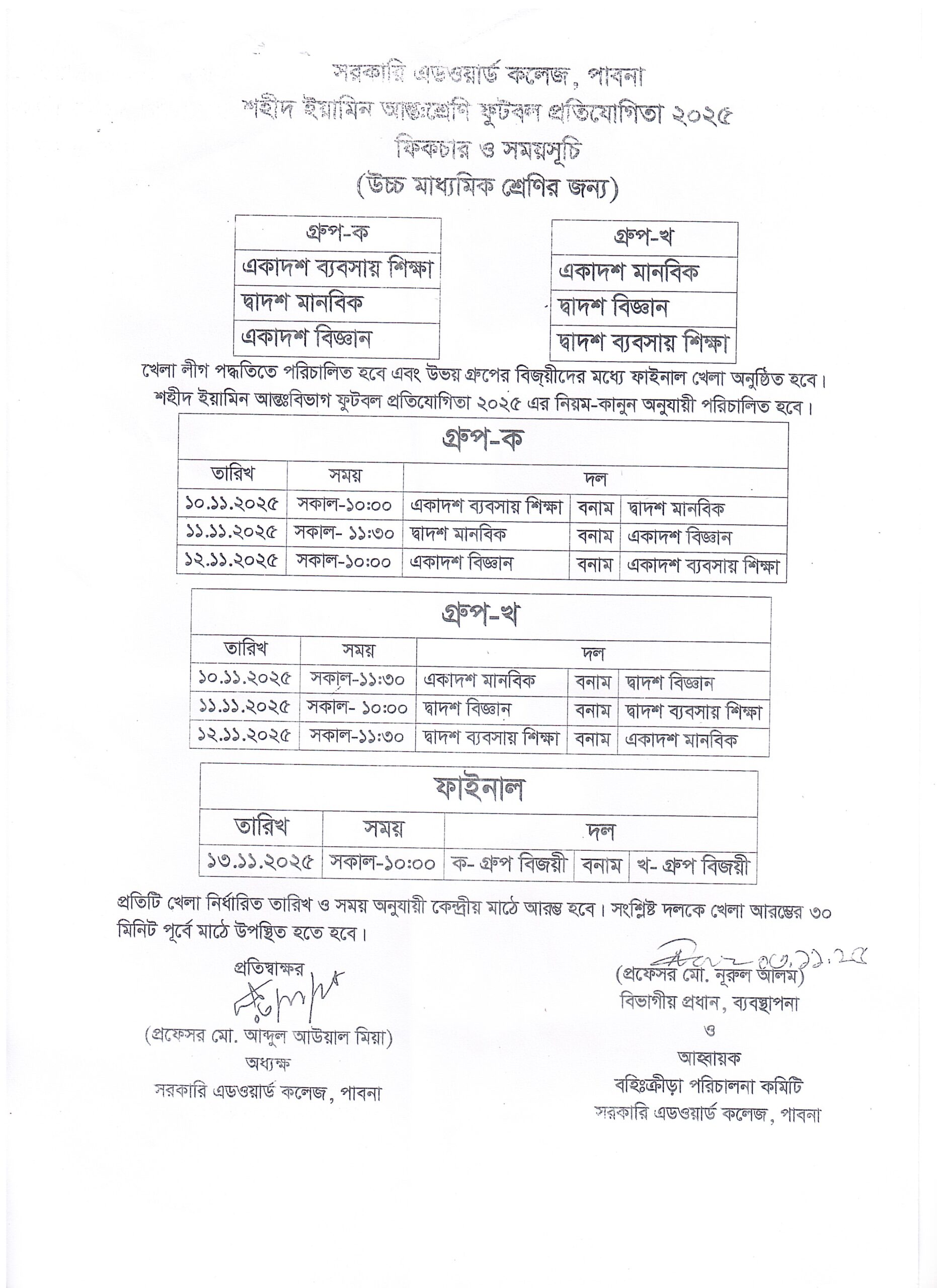 | আন্তঃকক্ষ ক্রীড়া প্রতিযোগিতা ২০২৪ এর ফিকচার ও তারিখ বিজ্ঞপ্তি |