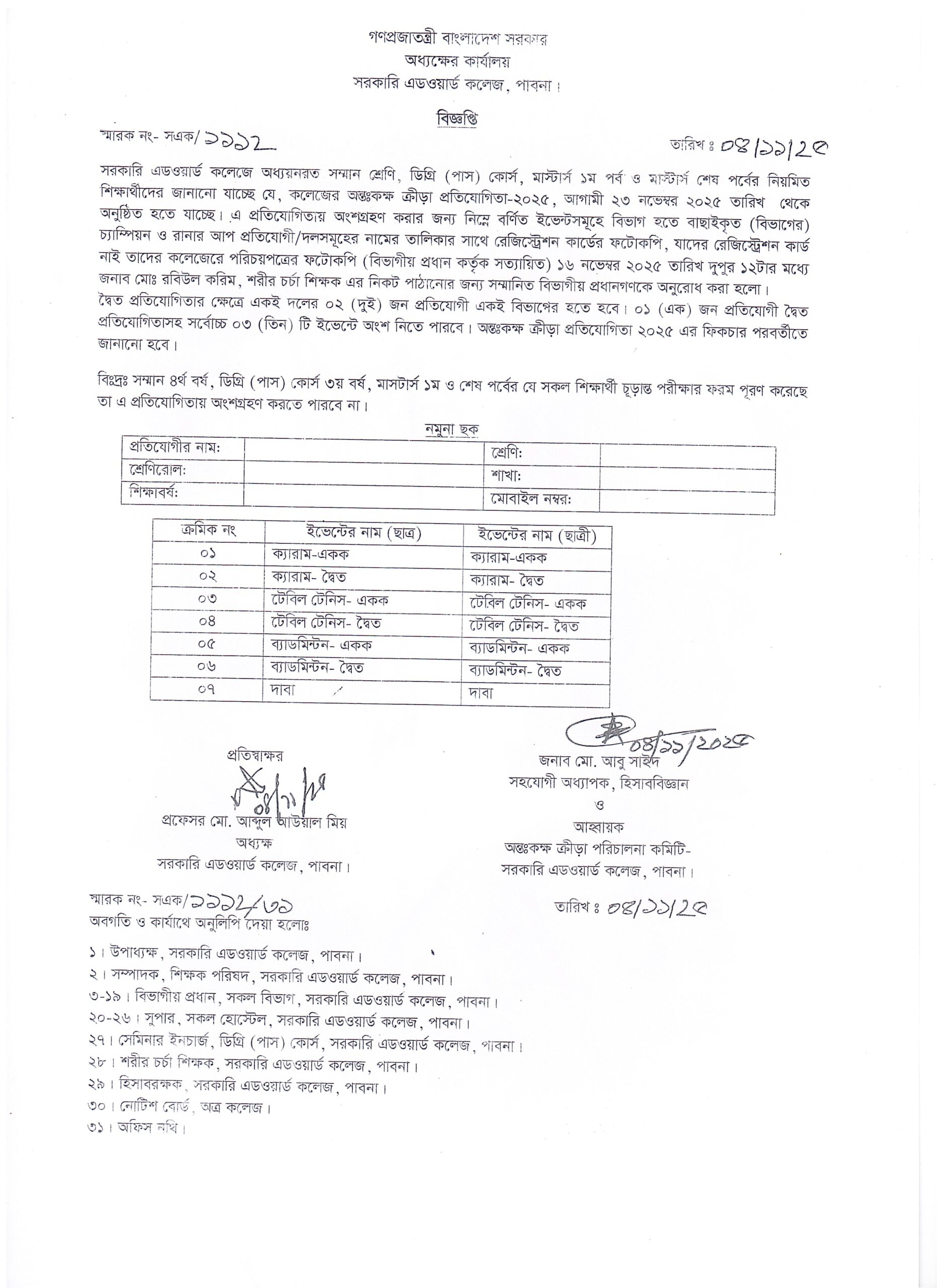 | আন্ত:কক্ষ ক্রীড়া প্রতিযোগীতা- 2025 (স্নাতক সম্মান, স্নাতক পাস ও স্নাতকোত্তর) |