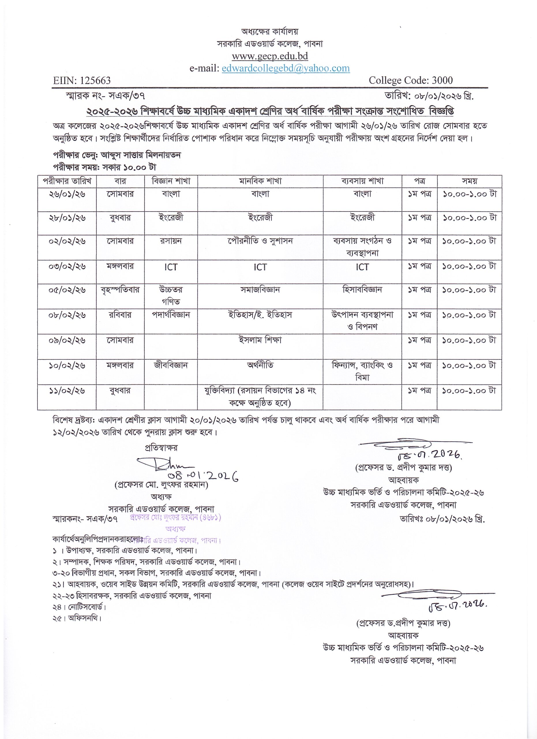 | ২০২৫-২৬ উচ্চ মাধ্যমিক একাদশ শ্রেণির অর্ধ-বার্ষিক পরীক্ষার রুটিন (সংশোধিত) |
