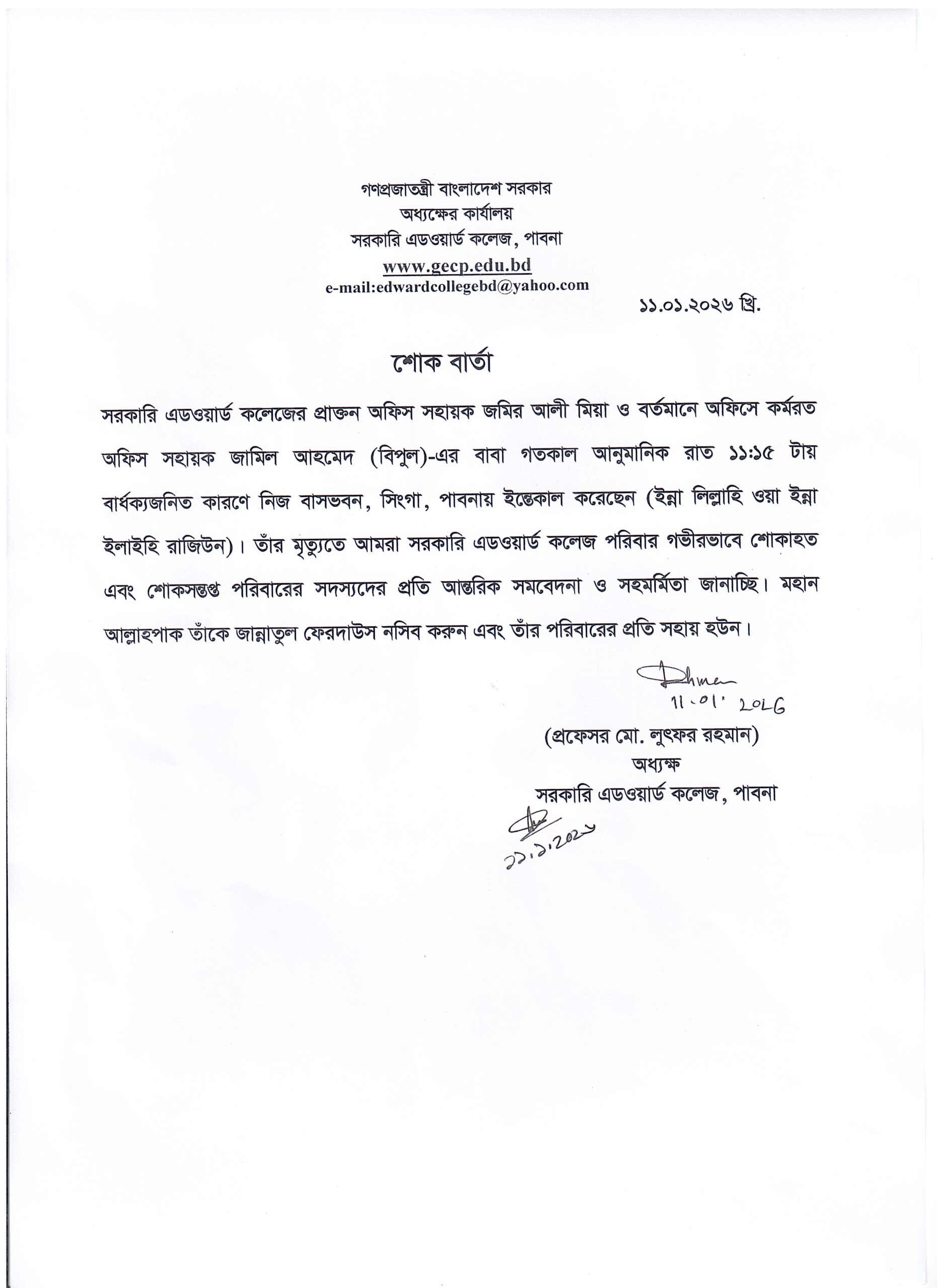 | 2025-26 শিক্ষাবর্ষে অনার্স ১ম বর্ষে ভর্তির সময় বৃদ্ধি বিজ্ঞপ্তি |