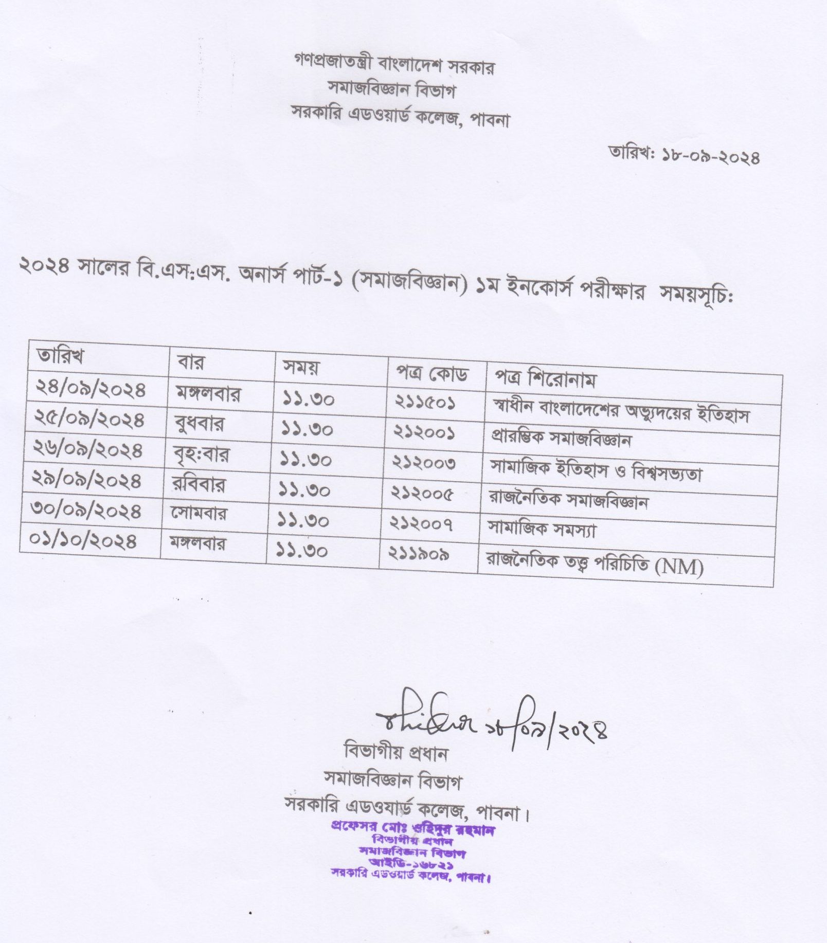 ২০২৪ সালের অনার্স ১ম বর্ষের ইনকোর্স পরীক্ষা সময়সূচি Copy